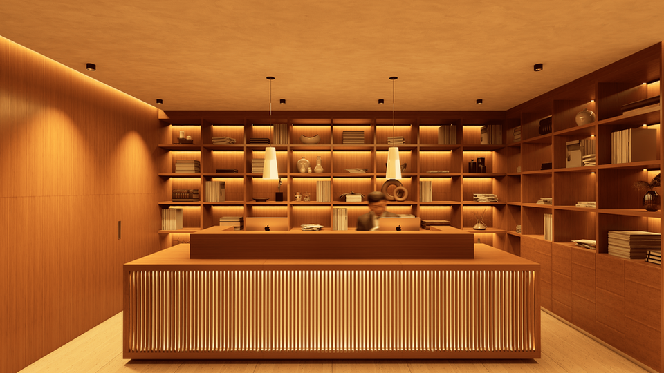 La más versátil del conjunto, dividida en tres zonas: acompañantes, despacho y área de trabajo. Diseñada para ofrecer amplitud, orden y funcionalidad en el día a día